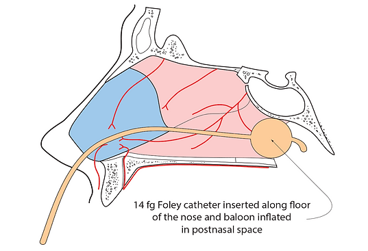 ​Nasal packing is placed when simple haemostasis measures fails. Packs come in a variety of different shapes, sizes and include some that inflate with water and others that inflate with air.